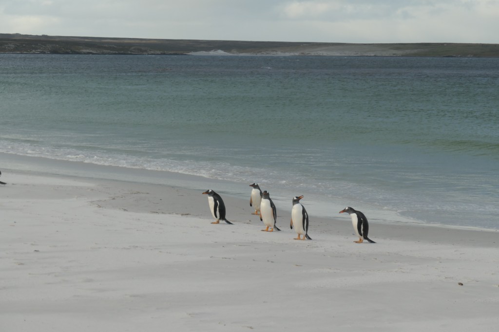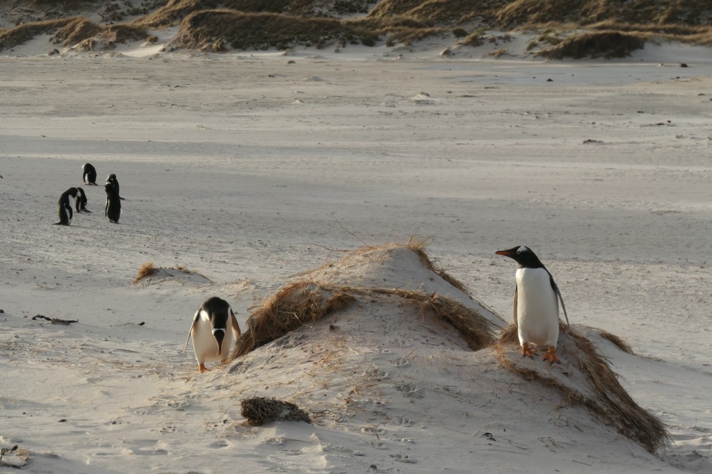 What to do on a Thursday evening after work… go to the sand dunes at Yorke Bay (15 minutes outside Stanley) and watch the Gentoo penguins coming ashore for the evening, starting to pair up and thinking about nests…