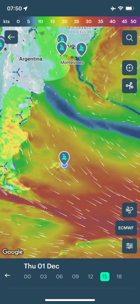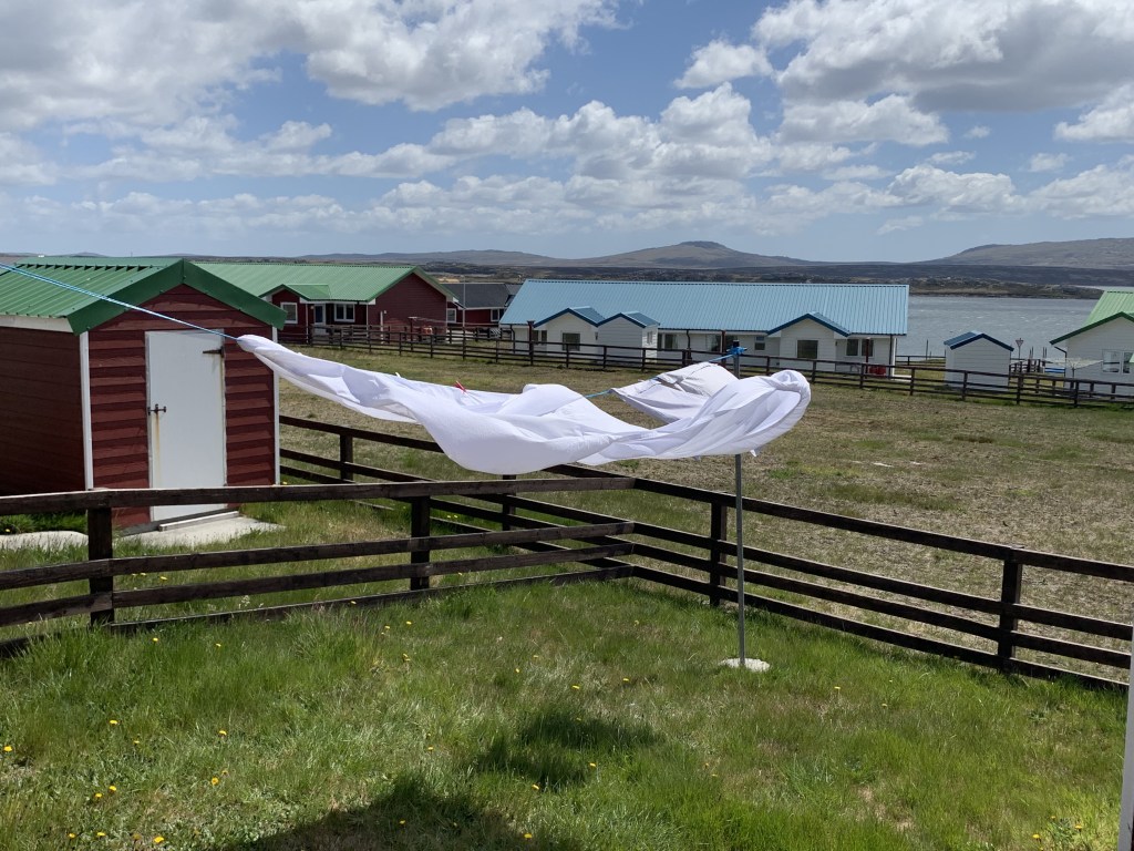 So to give you a feel for Falklands wind, here is a screenshot from the Windy app recently (speeds are in knots – 32 is a gale).