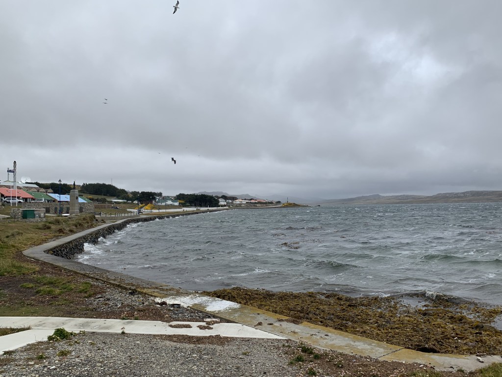 This is a shame, as it’s true that a defining feature of the Falklands is wind. I’m learning that a calm day is a treat to be enjoyed, and that a calm, sunny evening should be taken advantage of at once. Going to see the penguins at Yorke Bay on their sandy beach on a windy day is an exfoliating experience and you end up chewing sand for some hours later.