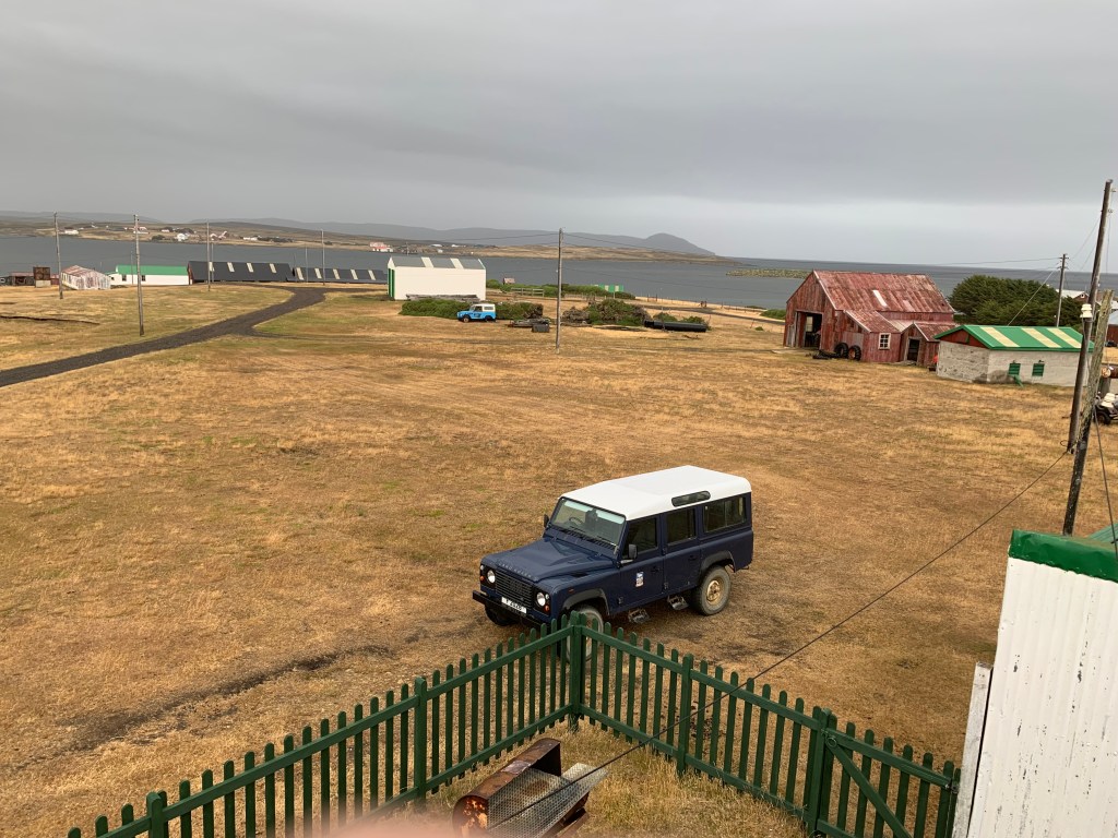 We drove down from Port Howard to Fox Bay Village – West Falkland is 80 miles long in total and 45 miles wide at some points, but the west coast is full of inlets and bays, so it often doesn’t feel very wide and certainly in the south there are points where you can see sea on both horizons.
