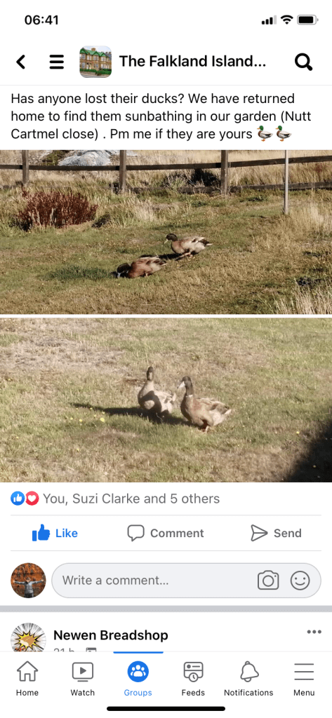 To be honest it’s hard to think of something that doesn’t have a group or a Facebook page – I wonder if Mark Zukerberg ever imagined it being used like this by a whole community when he set it up. It also makes me wonder if other Islands or small communities use Facebook in the same way, or is it a uniquely Falklands thing?