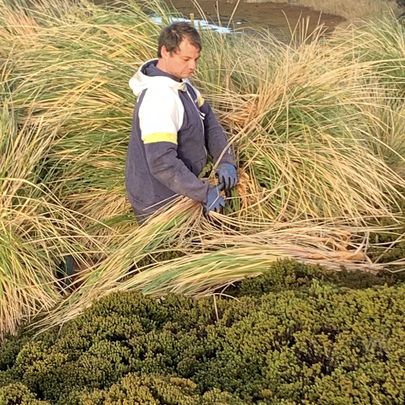 Or perhaps you’d like to make a contribution to the environment? Then why not get involved with Tussac grass planting. There’s an ongoing effort to replant Tussac in coastal areas, where it should be and where it supports nesting birds and a variety of animals. In some places it’s disappeared due to 150+ years of commercial grazing, but now it’s being given a helping hand to recover. So one summer weekend, a varied group of volunteers learned how to do this. An expert showed us how to get “tillers” (small tussock plants) out of a main plant – inevitably he made it look easy.