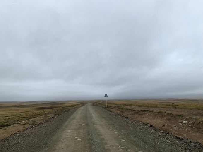 At MPC you turn on to a graded gravel road and keep going west towards Goose Green.  It’s a two vehicle width road but in reality most people drive in the middle unless they’re passing someone else.  It has a bit of reputation for being slidey in places, with the gravel piling up on each side, this can be treacherous and occasionally people do lose control and in the worst cases roll their cars.  I hadn’t seen anyone else for a while when I noticed three 4WDs coming up quite quickly behind me and a Discovery overtook the other two and in overtaking skidded, which the driver recovered but made the whole car lean alarmingly.  I was very happy to let him go past me and then a bit later the other two.  They all shot off into the distance, while I  continued at the speed limit…