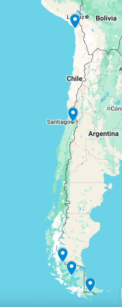 The major effect of all that length for Chile is some very different climates and eco-systems, but that’s a post for another day.